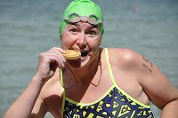 Kayla Angier, 24 of Winooski, Vermont won the female non-wetsuit division with a time of 2:07:48, just a couple of minutes ahead of Cheryl Elinsky, 49, of White River Junction, Vermont and local Shannon Keeghan, 37, of Derby in third. Keeghan continued on and jumped back in the water for a 9.5 mile double crossing.