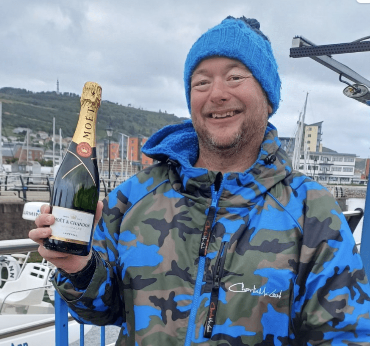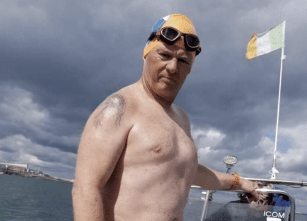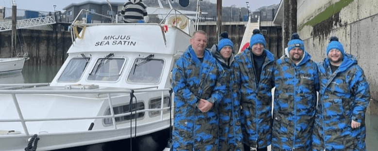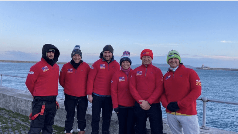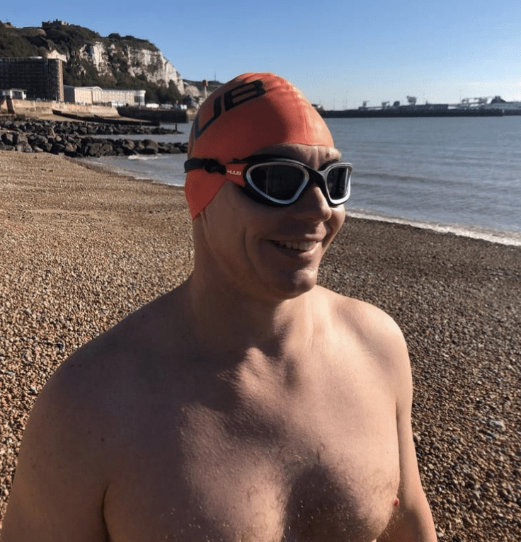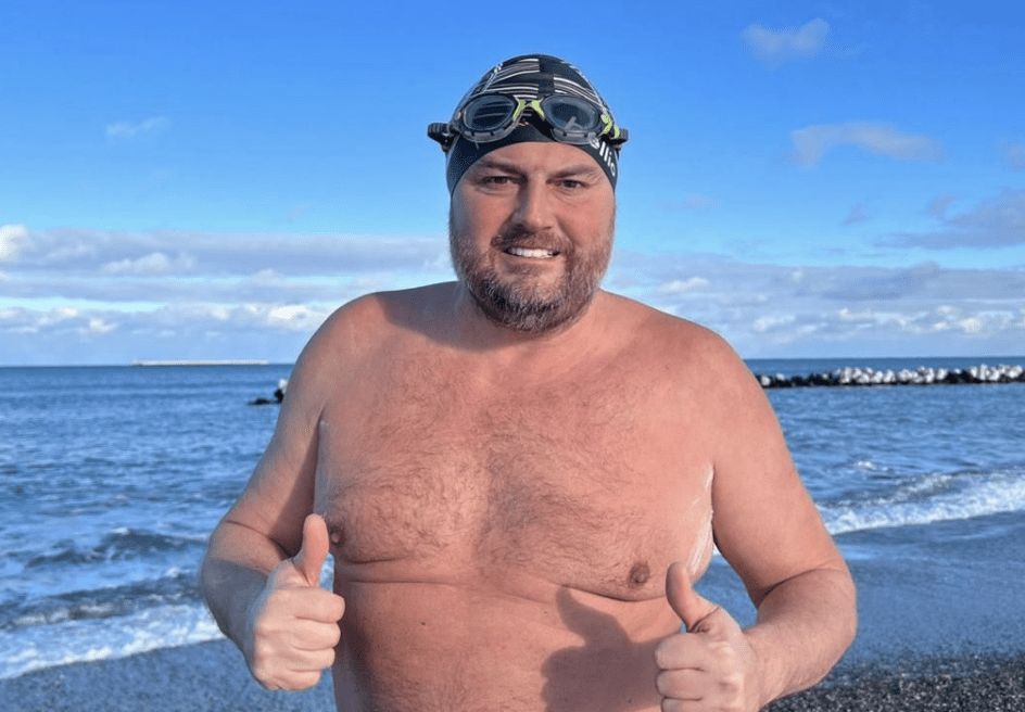 The Winter Relay of English Channel team in January 2024 included Ger Kennedy, John Myatt (IISA bio here), Stève Stievenart (IISA bio here, MSF bio here), Vincent Donegan, and Lee Johnson (MSF bio here) [shown below] who swam 33.5 km from England to France in 14 hours 45 minutes in 1-hour rotations in 7-10°C water temperatures.