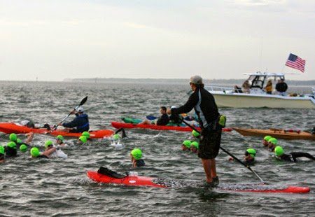 Upper photo shows the start with Commander John Doolittle, the first Navy SEAL to successfully cross the English Channel.