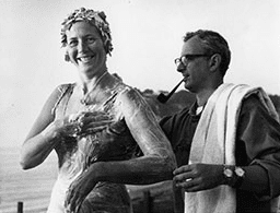 Grossman is shown applying Channel grease to Greta Andersen before entering the English Channel [shown above].